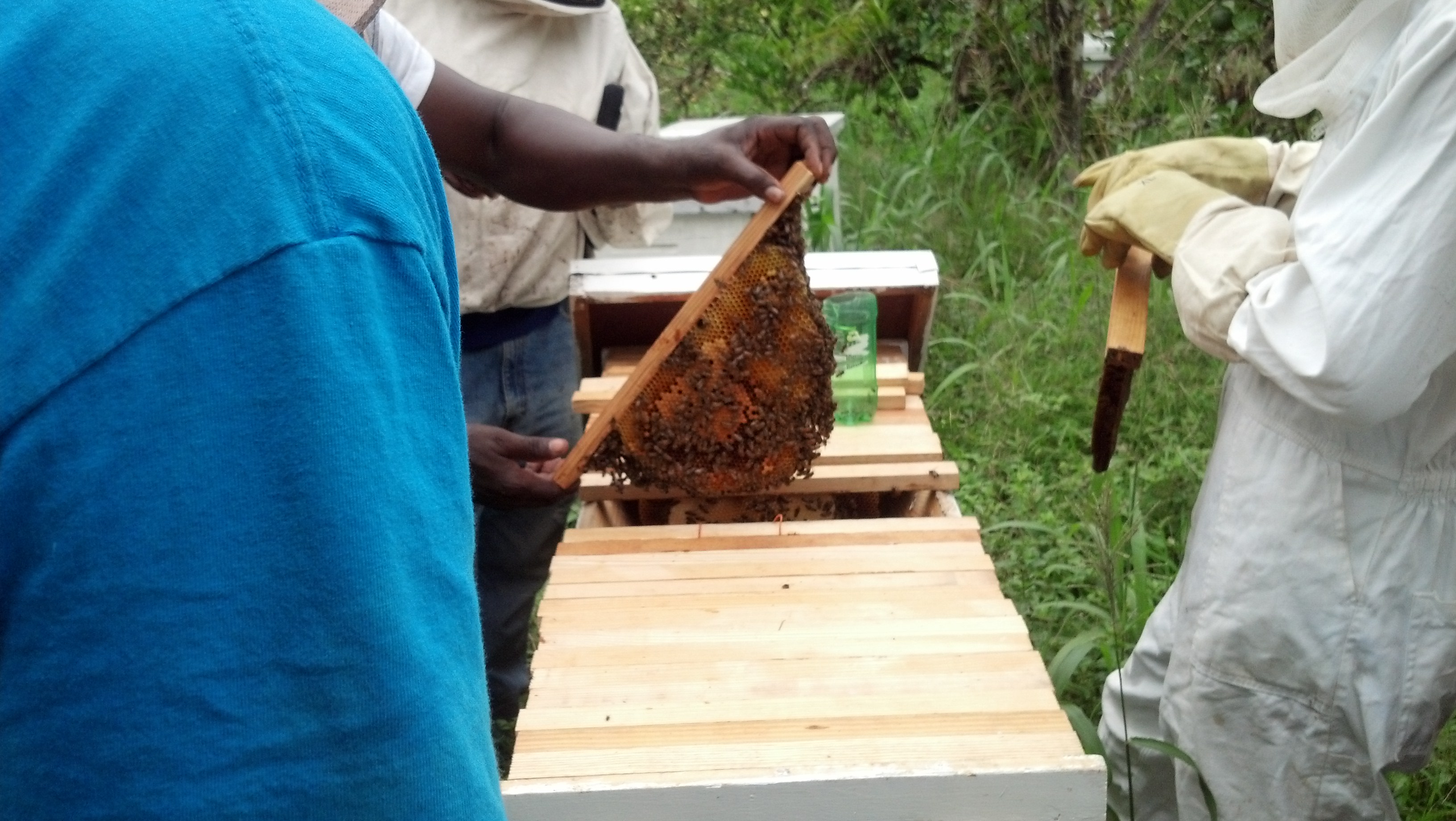 Top bar bee hives at Yerba Buena Farm in Jamaica.